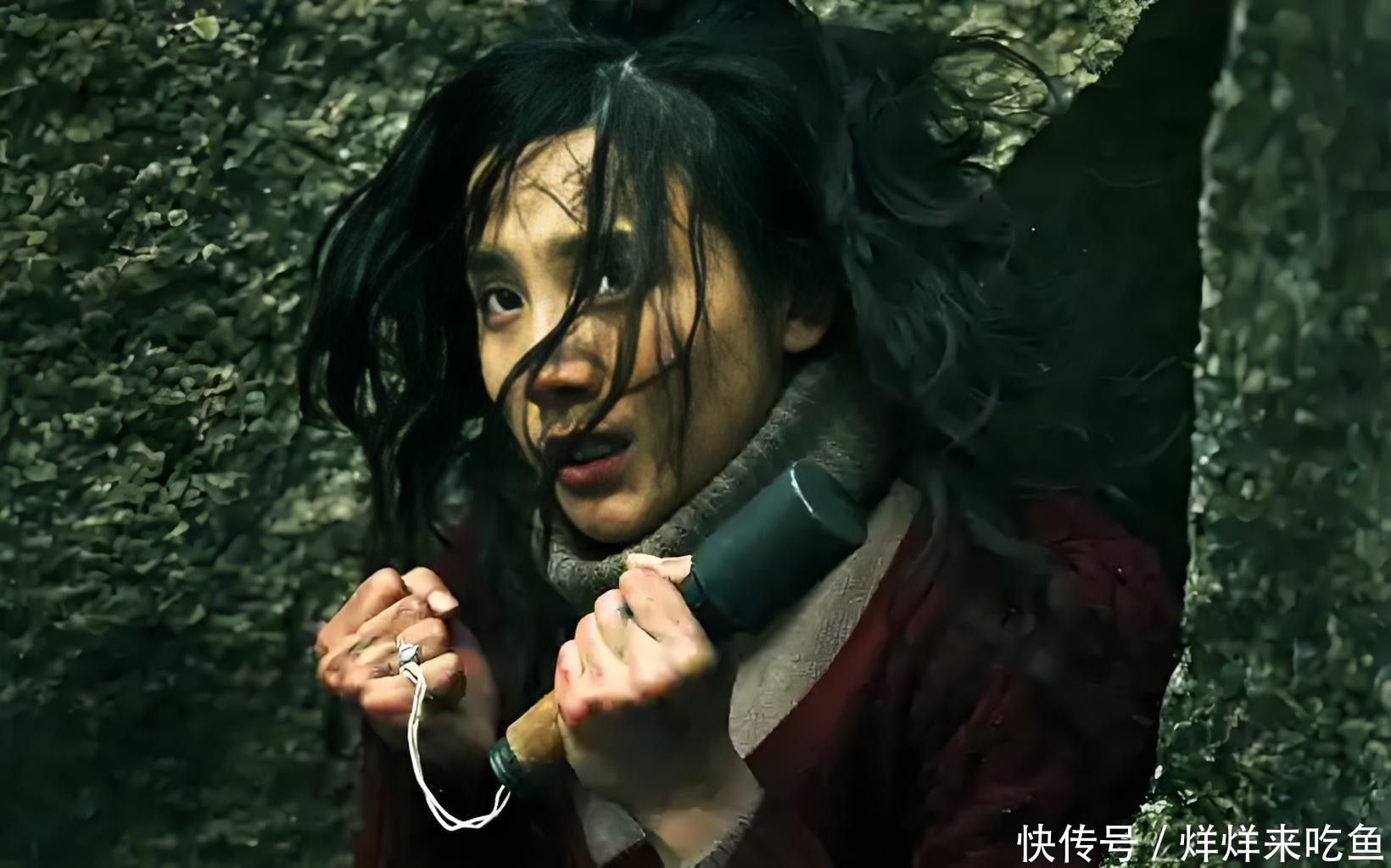 剧中有一场戏,是顾秋妍逃到悬崖边,在濒临绝境的边缘,她躲在山洞口,神情紧绷,头发凌乱,还沾着枯草根根,整个人狂颤不已。